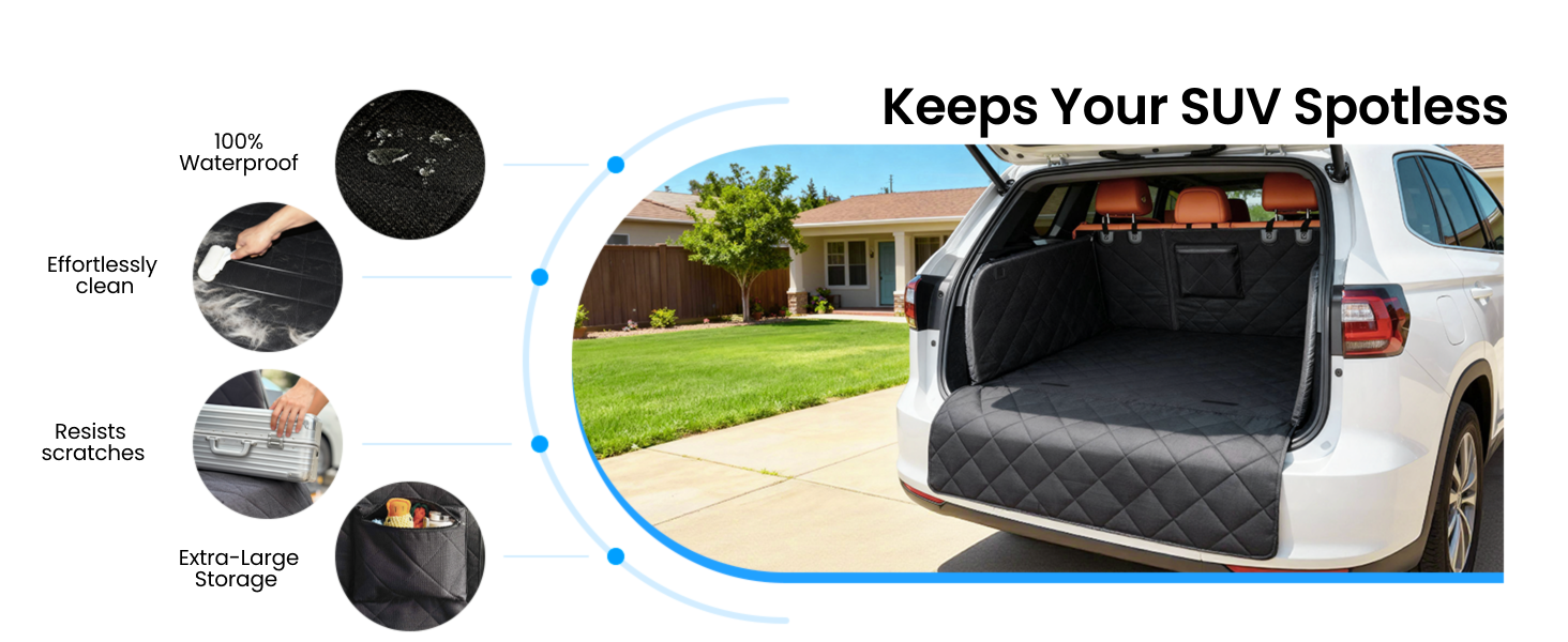 【Dual Waterproof Layers, Easy to Clean】Mud, sand, fur, or spills — wipe and go. Dual-layer waterproof fabric blocks messes and liquids to keep your SUV spotless. Less cleaning, more time for fun.