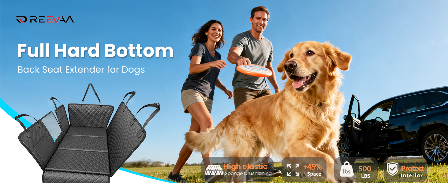 REEVAA Upgraded Dog Seat Cover for Back Seat, Hard Bottom with Cushion Sponge Extender, Ruff Waterproof Dog Hammock with Mesh Window for Car,Rover Universal Fits for SUV/Sedan/Small Truck,Black
