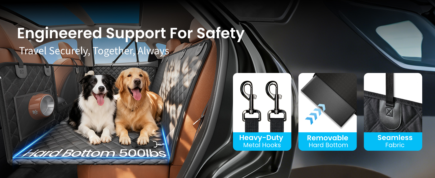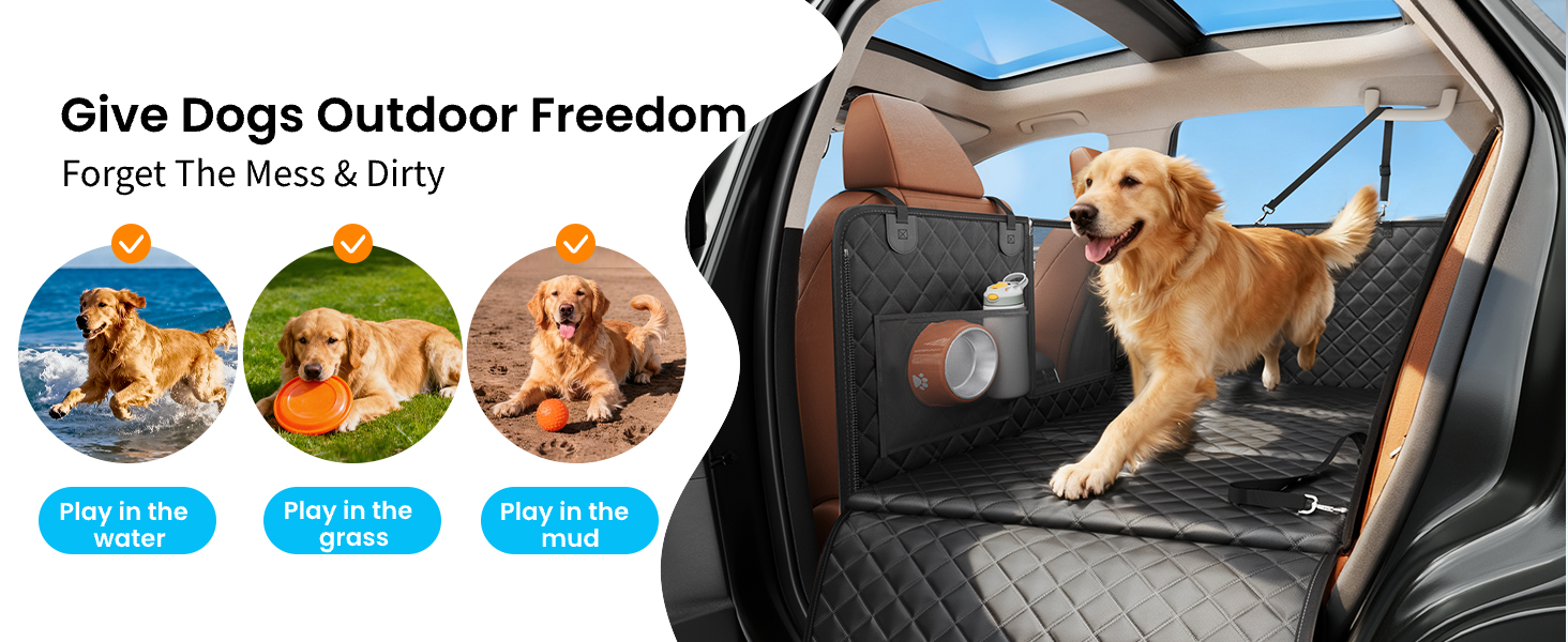 【Durable, Waterproof, and Anti-slip】Crafted from durable, tear-resistant fabric, this cover is ready for anything. The non-slip base keeps your dog secure, while its waterproof surface means a quick wipe is ok. Spotless backseat for your next adventure.