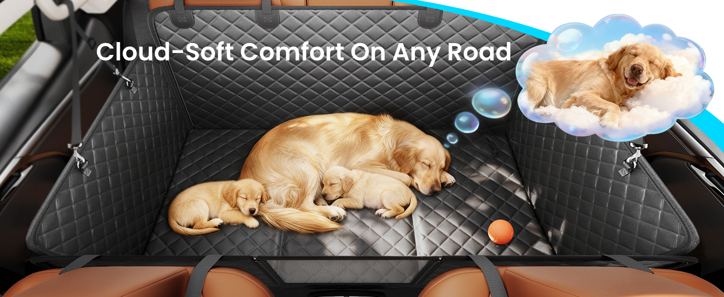【More Space, Safer Travels】Your pup deserves extra room to stretch. Our design fills the gap between front and rear seats, creating a flat, spacious bed. This means you won't worry about your furry friend falling off during the emergency brake.